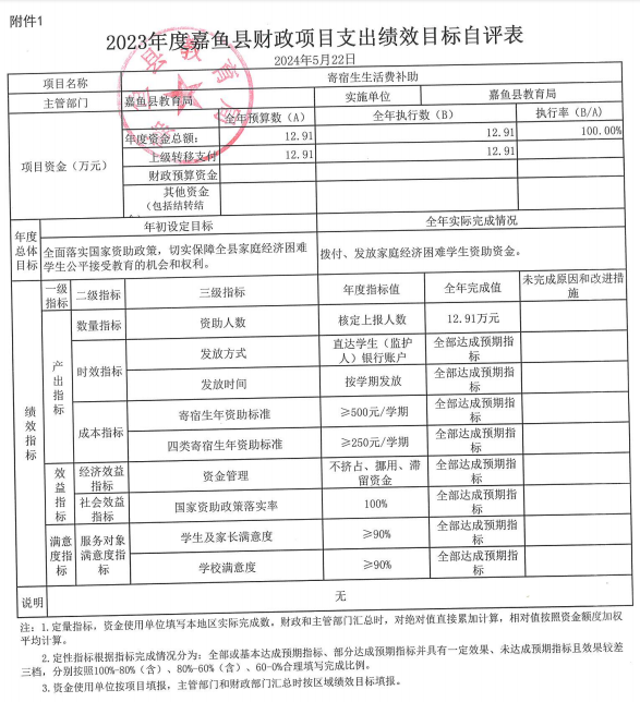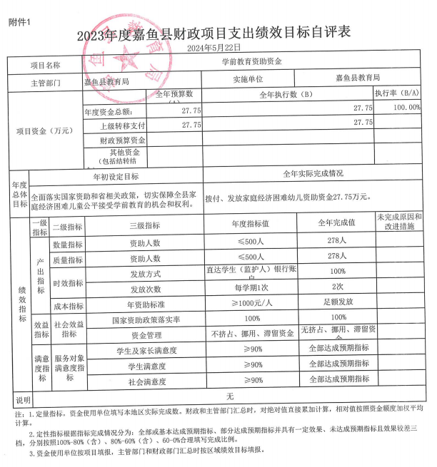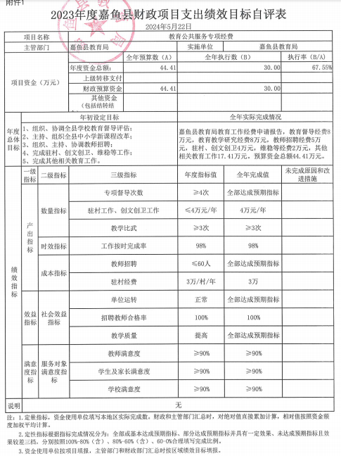 一、2023年度嘉鱼县教育局整体绩效评价自评表或(报告)