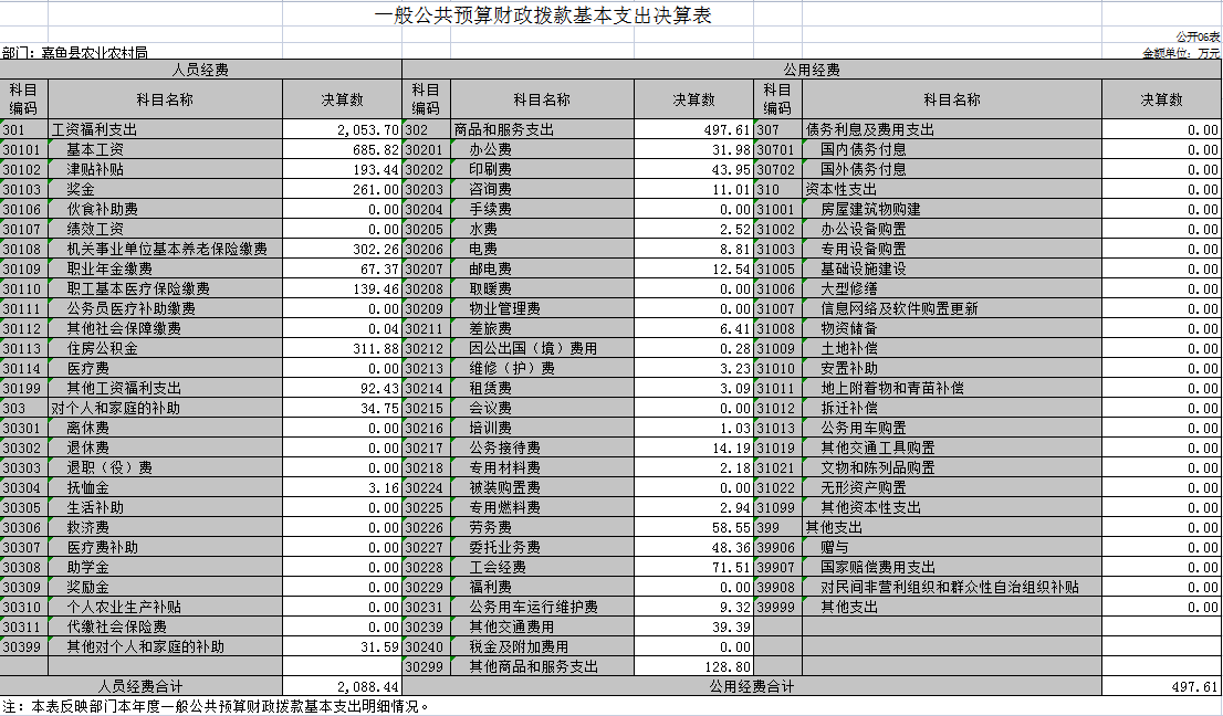第二部分 2020年部门决算公开表