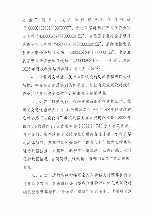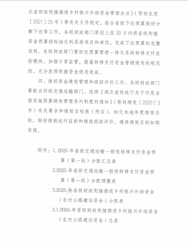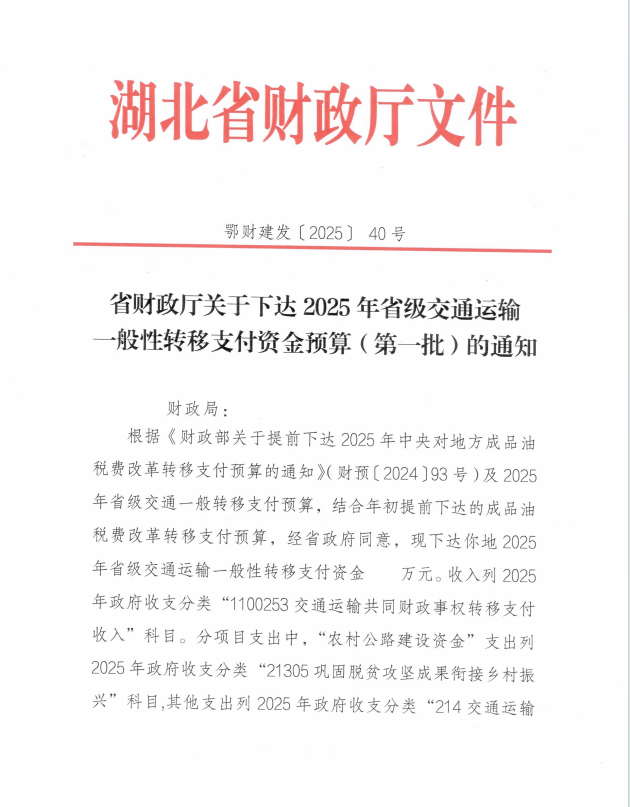 省财政厅关于下达2025年省级交通运输一般性转移支付资金预算(第一批)的通知