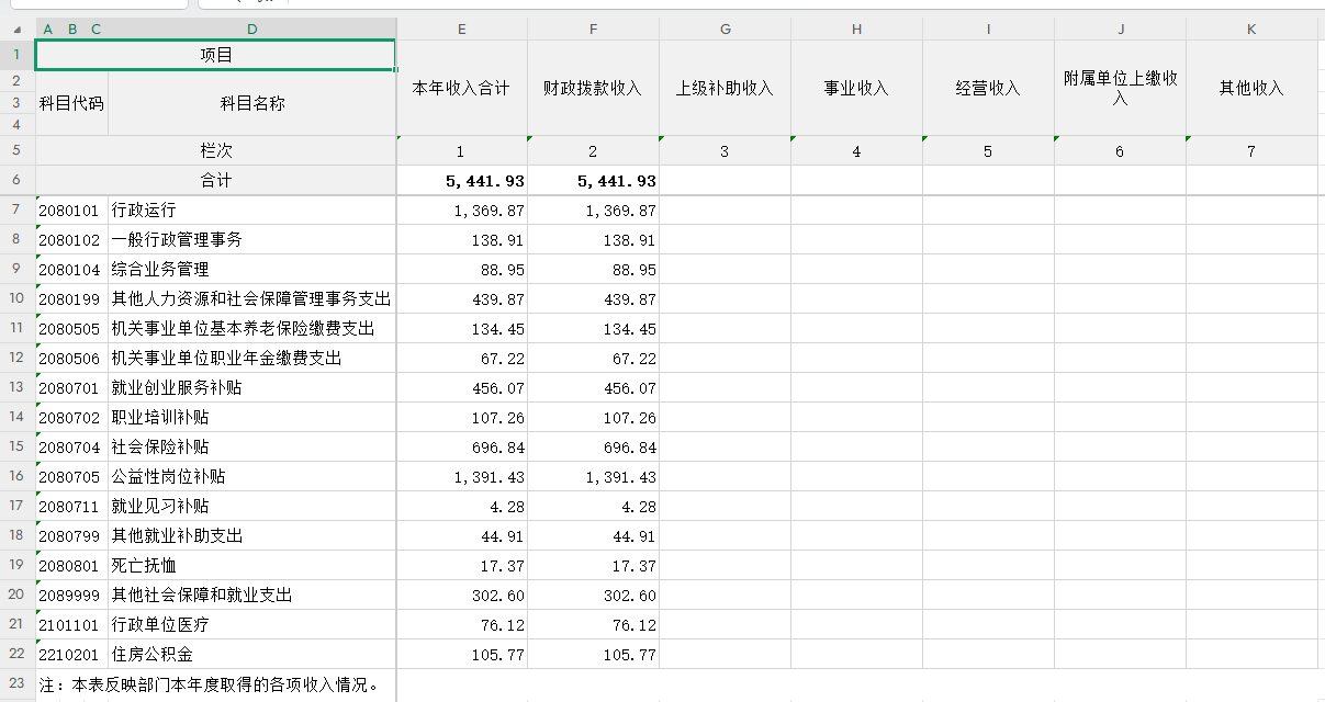 2024年度收入合计5441.93万元,与2023年度相比,收入合计减少535.62 万元,下降8.96 %。其中:财政拨款收入5441.93万元,占本年收入100 %;上级补助收入0 万元,占本年收入0 %;事业收入0 万元,占本年收入0 %;经营收入0 万元,占本年收入0 %;附属单位上缴收入0 万元,占本年收入0%;其他收入0 万元,占本年收入0 %。