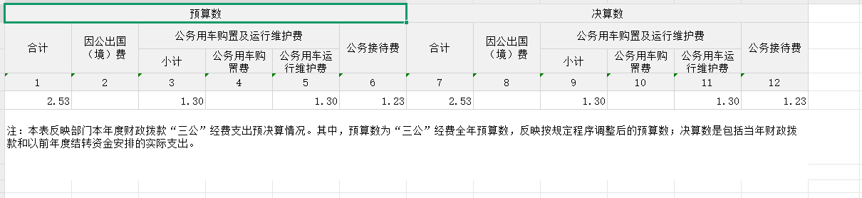 (2)公务用车运行费支出1.2万元,主要用于公车日常加油维护等。