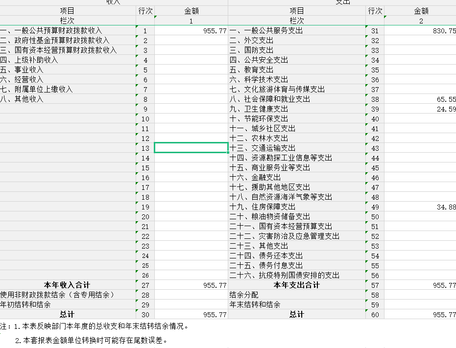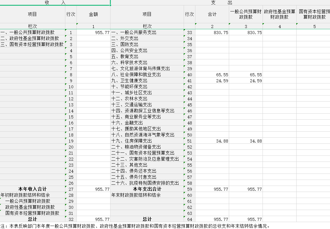 2024年度收、支总计均为955.77 万元。与2023年度相比,收、支总计各减少157.97 万元,下降14.18 %,主要原因是严格执行中央八项规定,厉行节约。