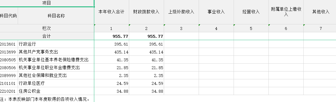 2024年度收入合计955.77万元,与2023年度相比,收入合计减少157.97万元,下降14.18 %。其中:财政拨款收入955.77万元,占本年收入100%;上级补助收入0万元,占本年收入0%;事业收入0万元,占本年收入0%;经营收入0万元,占本年收入0%;附属单位上缴收入0 万元,占本年收入0%;其他收入0万元,占本年收入0%。