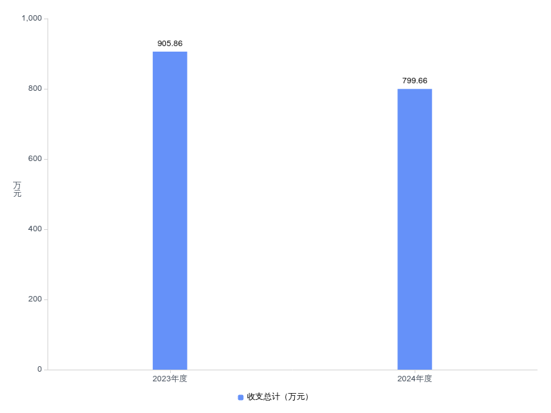 2024年度收、支总计均为799.66万元。与2023年度相比,收、支总计减少106.20万元,下降11.7%,主要原因教师数减少,项目建设支出减少。
