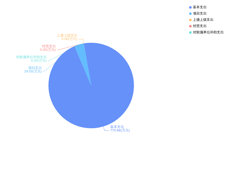 2024年度支出合计799.66万元,与2023年度相比,支出合计减少106.20万元,下降11.7%。其中:基本支出770.66万元,占本年支出96.4%;项目支出29.00万元,占本年支出3.6%;上缴上级支出0.00万元,占本年支出0.0%;经营支出0.00万元,占本年支出0.0%;对附属单位补助支出0.00万元,占本年支出0.0%。