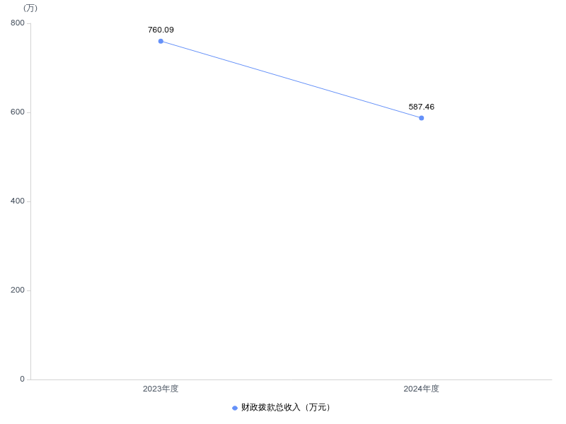 2024年度财政拨款收、支总计均为587.46万元。与2023年度相比,财政拨款收、支总计各减少172.63万元,下降22.7%。主要原因是一般公共预算财政拨款减少,住房保障支出减少。