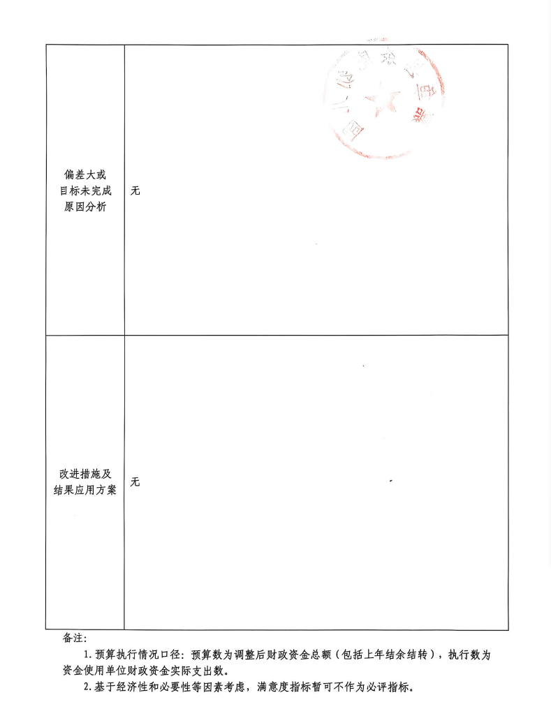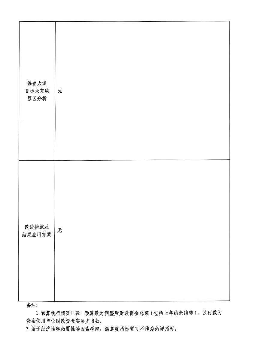 组织开展部门整体绩效评价,评价情况来看,2023年所设立的绩效目标总体上符合国家法律法规、国民经济和社会发展总体规划的要求,资金使用符合国家财经法规和财务管理制度的规定,预算执行情况良好,项目实施与绩效目标、预算安排较匹配。发现的问题及原因:一是指标体系设定的科学性、全面性还需进一步提炼;二是绩效运行监控需进一步加强。下一步改进措施:一是进一步完善优化绩效目标及指标值,充分体现项目特点,提高绩效目标与项目实施的匹配度。二是建立绩效运行监控机制,强化预算约束,提升预算绩效评价结果运用水平,提高预算绩效结果运用效益。
