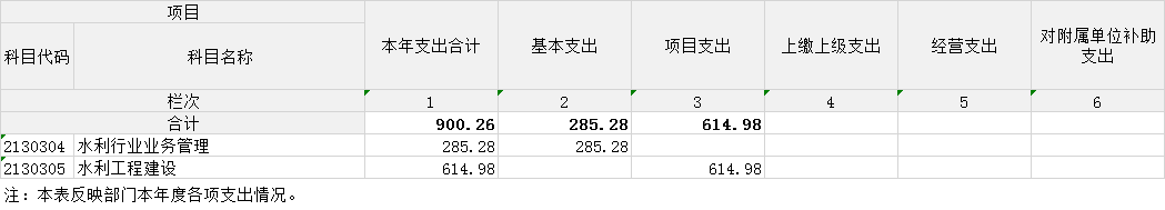 农林水支出类支出决算数为 900.26万元,占100%。主要用于单位基本运转和工程项目支出。