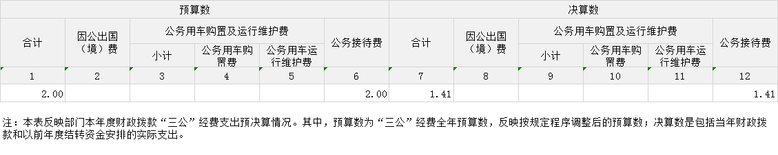 (十六)“三公”经费:纳入省级财政预决算管理的“三公”经费,是指省直部门用财政拨款安排的因公出国(境)费、公务用车购置及运行费和公务接待费。其中,因公出国(境)费反映单位公务出国(境)的国际旅费、国外城市间交通费、住宿费、伙食费、培训费、公杂费等支出;公务用车购置及运行费反映单位公务用车购置支出(含车辆购置税、牌照费)及燃料费、维修费、过桥过路费、保险费、安全奖励费用等支出;公务接待费反映单位按规定开支的各类公务接待(含外宾接待)费用。
