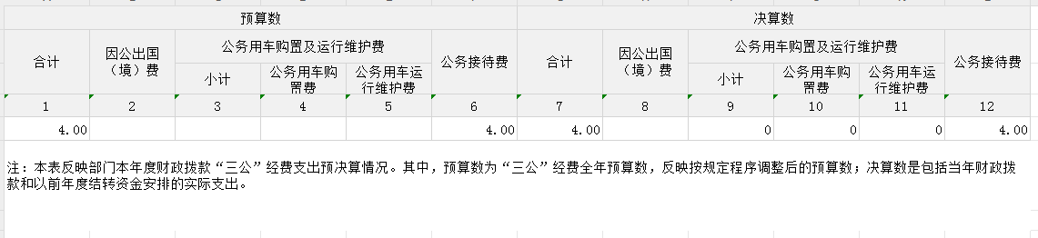 (十六)“三公”经费:纳入省级财政预决算管理的“三公”经费,是指省直部门用财政拨款安排的因公出国(境)费、公务用车购置及运行费和公务接待费。其中,因公出国(境)费反映单位公务出国(境)的国际旅费、国外城市间交通费、住宿费、伙食费、培训费、公杂费等支出;公务用车购置及运行费反映单位公务用车购置支出(含车辆购置税、牌照费)及燃料费、维修费、过桥过路费、保险费、安全奖励费用等支出;公务接待费反映单位按规定开支的各类公务接待(含外宾接待)费用。