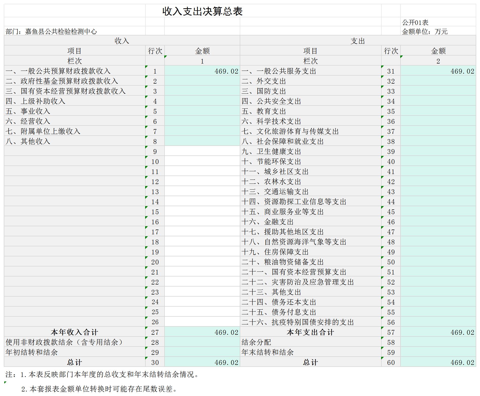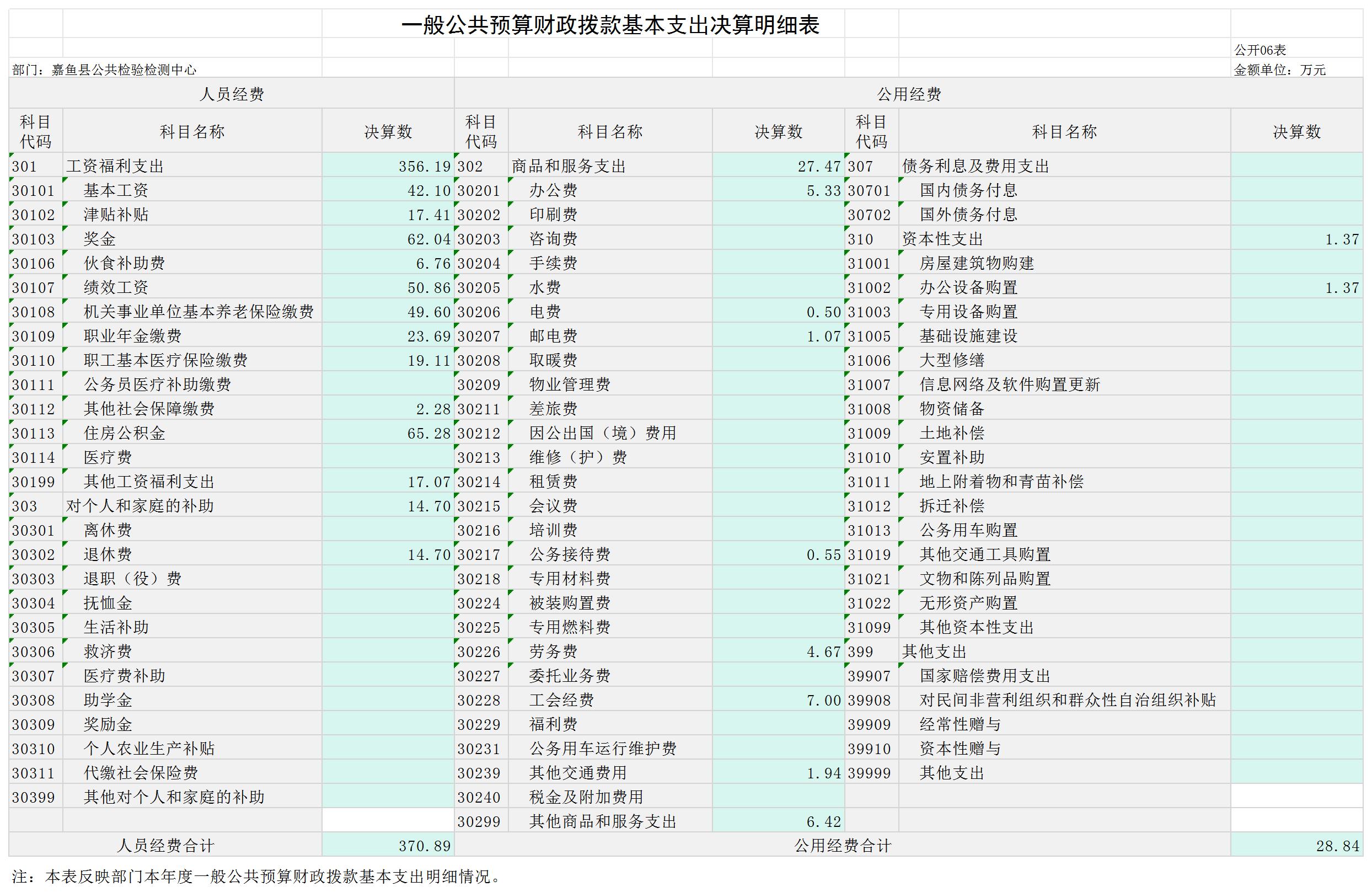 第二部分嘉鱼县公共检验检测中心2024年度部门决算公开表