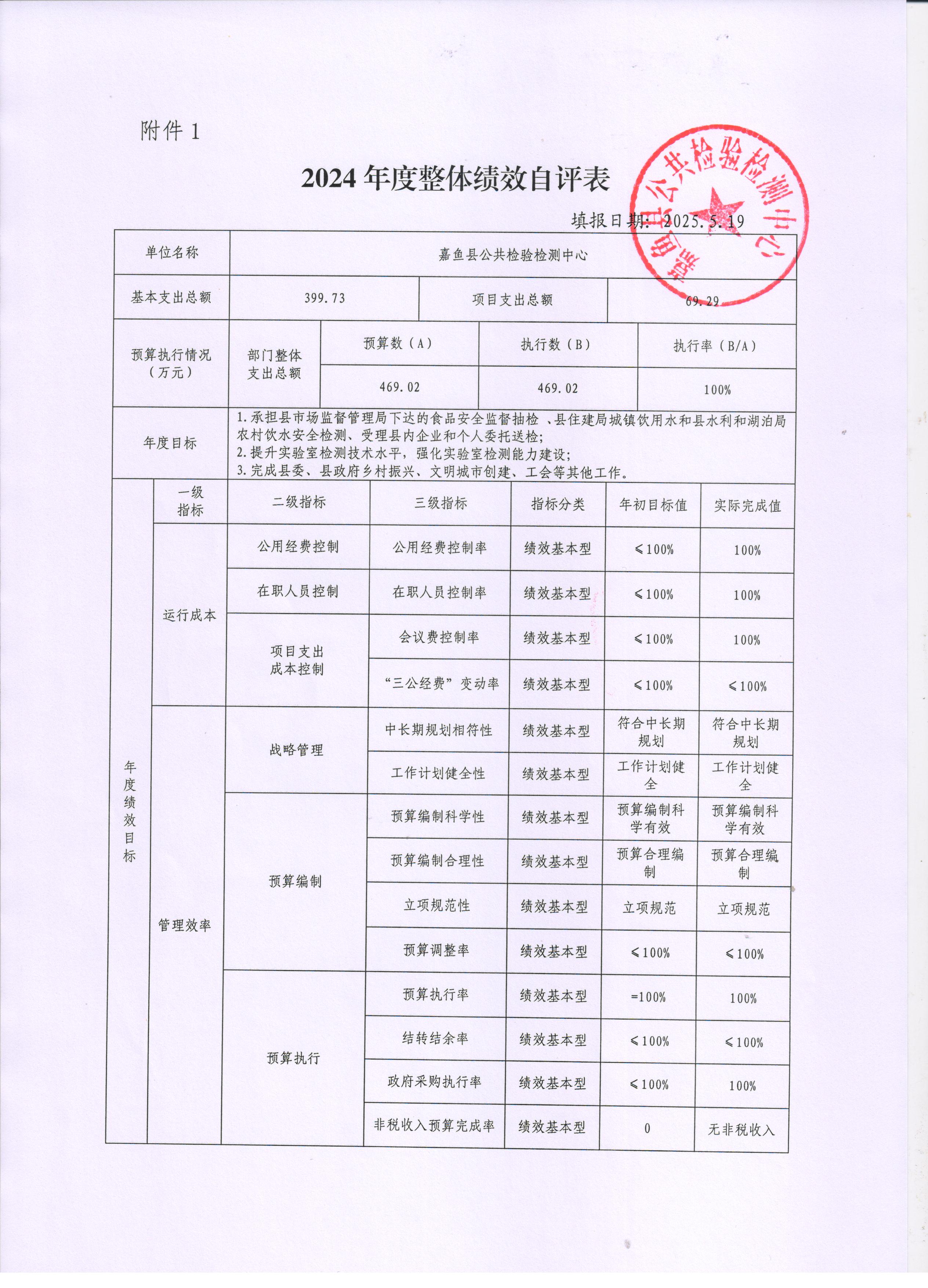 一、2024年度嘉鱼县公共检验检测中心整体绩效评价自评表