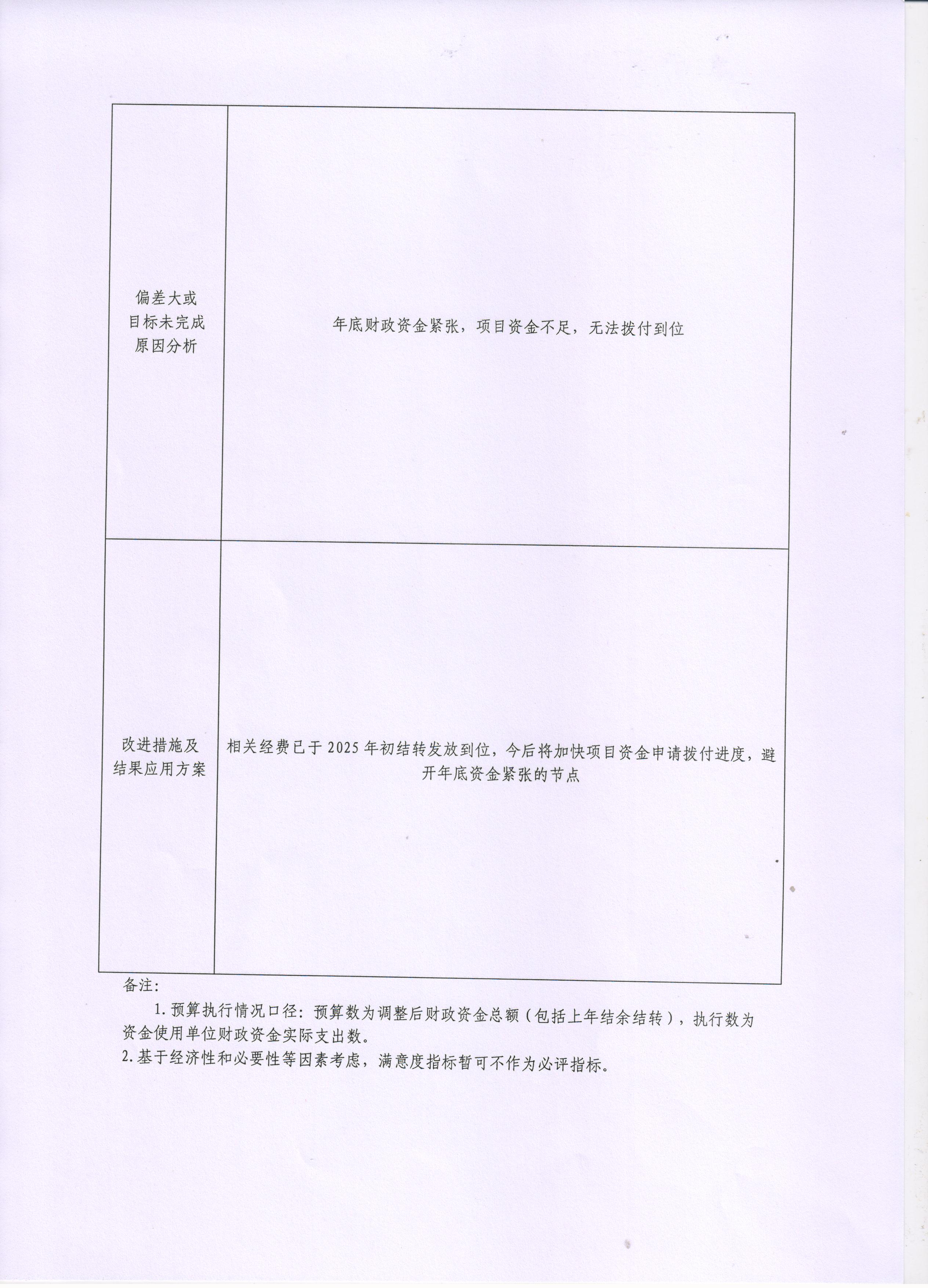 食品药品抽检专项经费项目绩效自评综述:项目全年预算数为20万元,执行数为10万元,完成预算50%。主要产出和效益:完成抽检和检验300批次食品药品,检测报告科学准确。发现的问题及原因:年底财政资金紧张,项目资金不足,未能及时拨付到位,相关经费已于2025年初结转发放到位,今后将加快项目资金申请拨付进度,避开年底资金紧张的节点。
