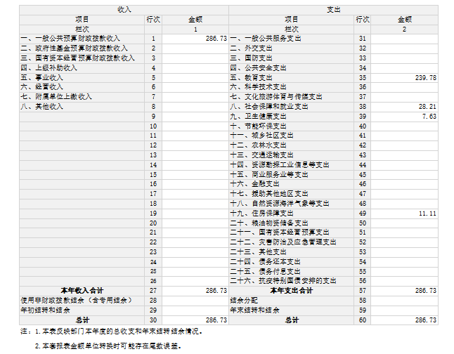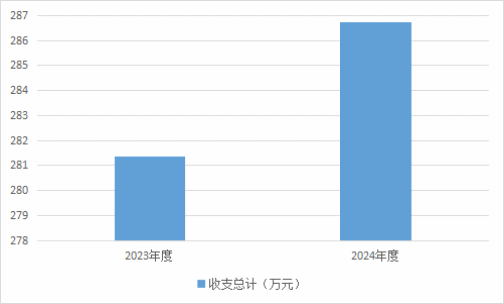 2024年度收、支总计均为286.73万元。与2023年度相比,收、支总计各增加5.38万元,增长1.91%,主要原因是增加了项目收入和项目支出。