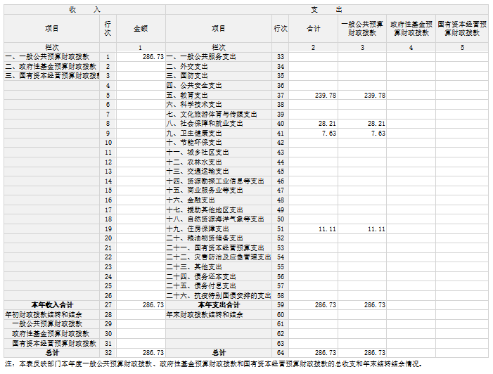 2024年度财政拨款收、支总计均为286.73万元。与2023年度相比,财政拨款收、支总计各增加5.38万元,增长1.91%。主要原因是增加了项目收入和项目支出。