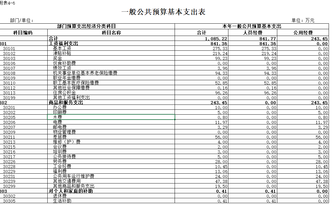 6.基本支出:指为保障机构正常运转、完成日常工作任务而发生的人员支出和公用支出。