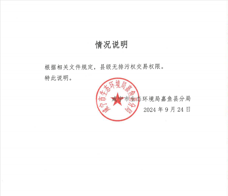 名       称: 关于排污权交易的情况说明 发布日期: 2024年09月25日