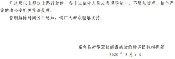 主题分类: 公路 发文单位: 嘉鱼县新型冠状病毒感染的肺炎防控指挥部
